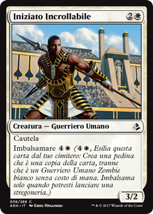 | Rules | Vigilance Embalm (, Exile this card from your graveyard: Create a token that's a copy of it, except it's a white Zombie Human Warrior with no mana cost. Embalm only as a sorcery.) |