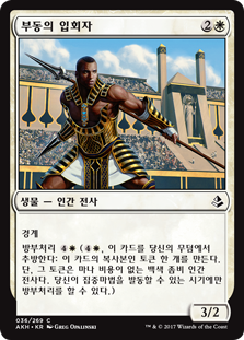 | Rules | Vigilance Embalm (, Exile this card from your graveyard: Create a token that's a copy of it, except it's a white Zombie Human Warrior with no mana cost. Embalm only as a sorcery.) |