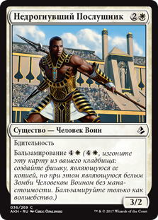 | Rules | Vigilance Embalm (, Exile this card from your graveyard: Create a token that's a copy of it, except it's a white Zombie Human Warrior with no mana cost. Embalm only as a sorcery.) |