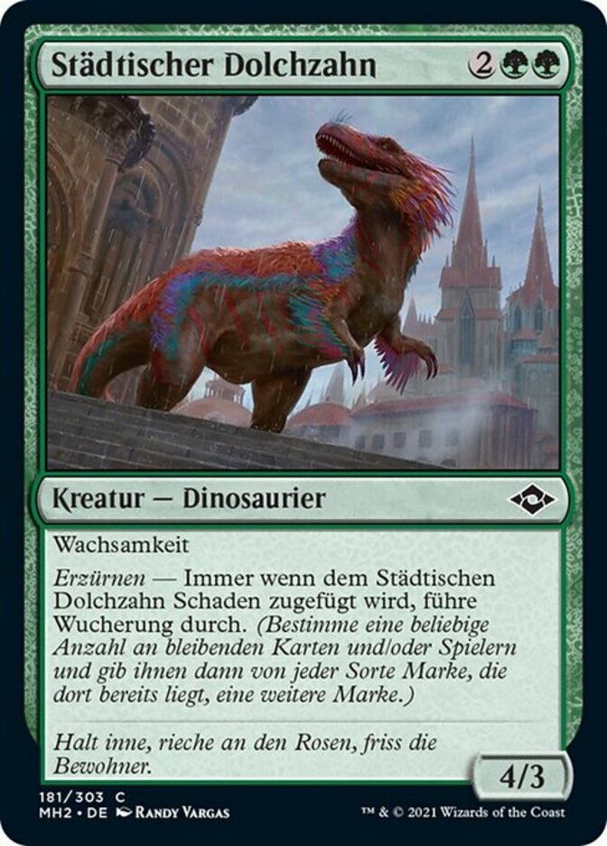 | Rules | Vigilance Enrage — Whenever Urban Daggertooth is dealt damage, proliferate. (Choose any number of permanents and/or players, then give each another counter of each kind already there.) |