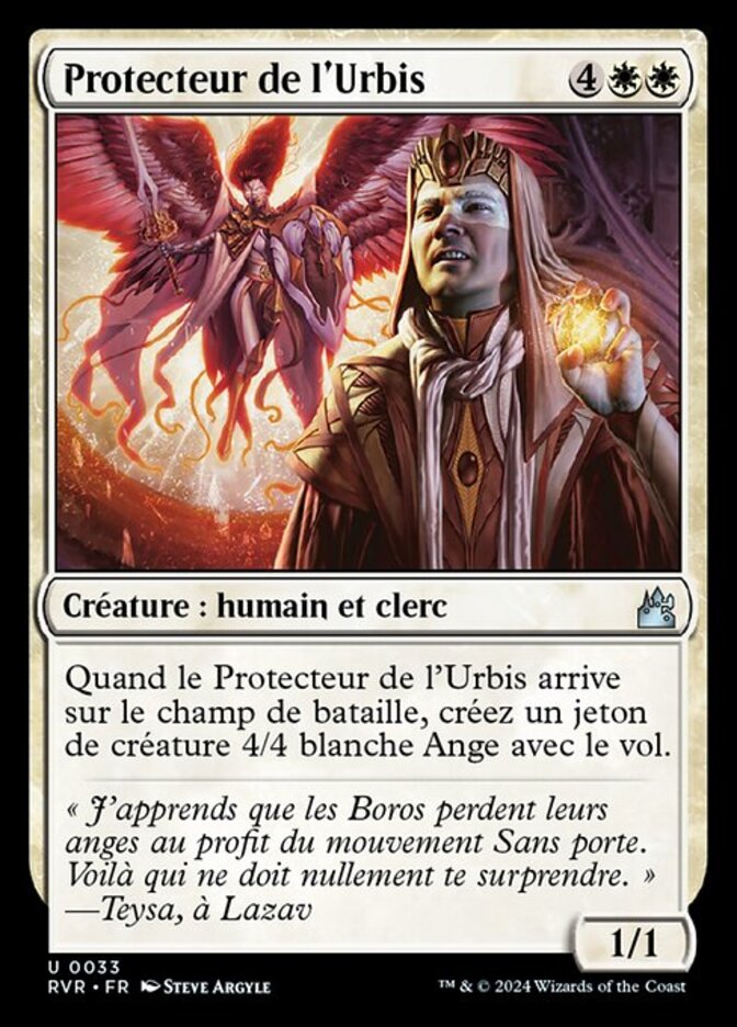 | Rules | When Urbis Protector enters the battlefield, create a 4/4 white Angel creature token with flying. |