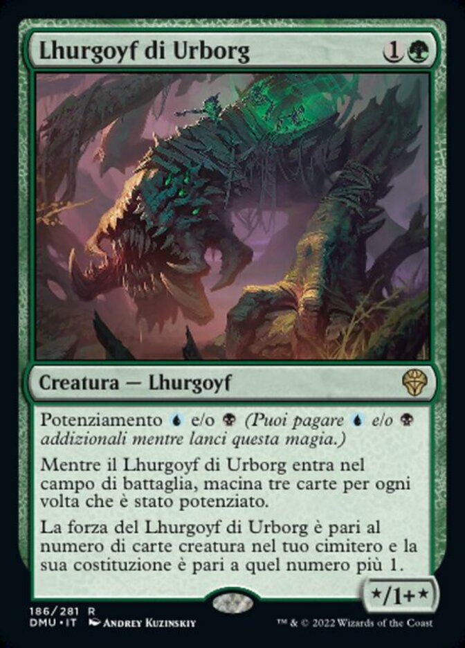 | Rules | Kicker and/or (You may pay an additional and/or as you cast this spell.) As Urborg Lhurgoyf enters the battlefield, mill three cards for each time it was kicked. Urborg Lhurgoyf's power is equal to the number of creature cards in your graveyard and its toughness is equal to that number plus 1. |