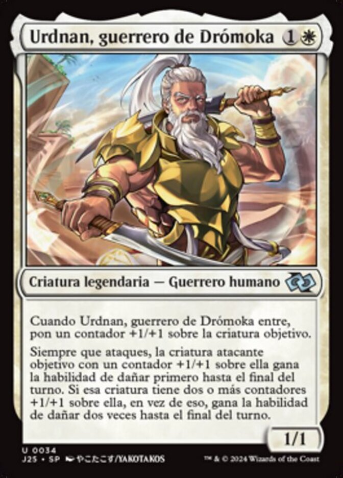 | Rules | When Urdnan, Dromoka Warrior enters, put a +1/+1 counter on target creature. Whenever you attack, target attacking creature with a +1/+1 counter on it gains first strike until end of turn. If that creature has two or more +1/+1 counters on it, it gains double strike until end of turn instead. |