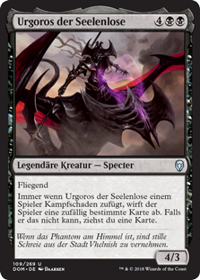 | Rules | Flying Whenever Urgoros, the Empty One deals combat damage to a player, that player discards a card at random. If the player can't, you draw a card. |