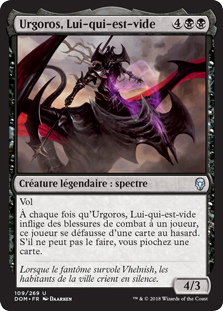 | Rules | Flying Whenever Urgoros, the Empty One deals combat damage to a player, that player discards a card at random. If the player can't, you draw a card. |