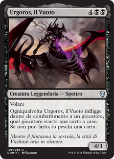 | Rules | Flying Whenever Urgoros, the Empty One deals combat damage to a player, that player discards a card at random. If the player can't, you draw a card. |