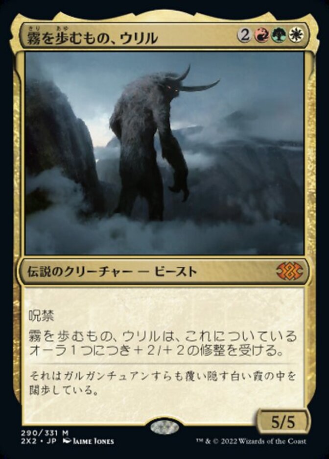 | Rules | Hexproof (This creature can't be the target of spells or abilities your opponents control.) Uril, the Miststalker gets +2/+2 for each Aura attached to it. |