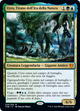 | Rules | When Uro enters the battlefield, sacrifice it unless it escaped. Whenever Uro enters the battlefield or attacks, you gain 3 life and draw a card, then you may put a land card from your hand onto the battlefield. Escape—, Exile five other cards from your graveyard. (You may cast this card from your graveyard for its escape cost.) |