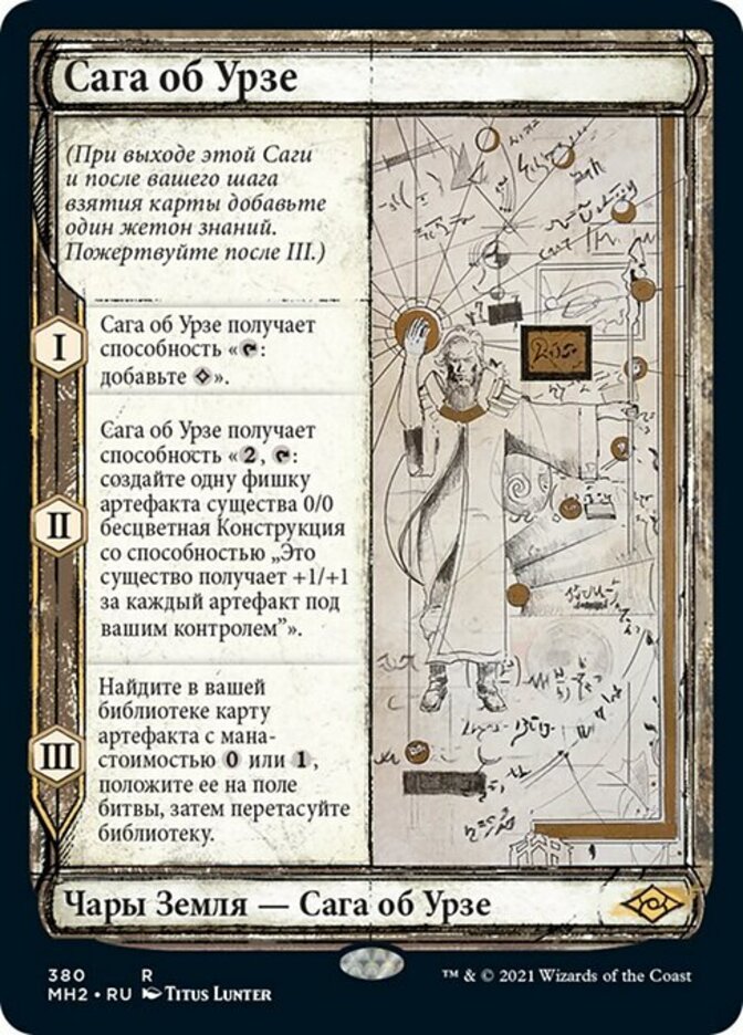 | Rules | (As this Saga enters and after your draw step, add a lore counter. Sacrifice after III.) I — Urza's Saga gains ": Add ." II — Urza's Saga gains ", : Create a 0/0 colorless Construct artifact creature token with 'This creature gets +1/+1 for each artifact you control.'" III — Search your library for an artifact card with mana cost or , put it onto the battlefield, then shuffle. |