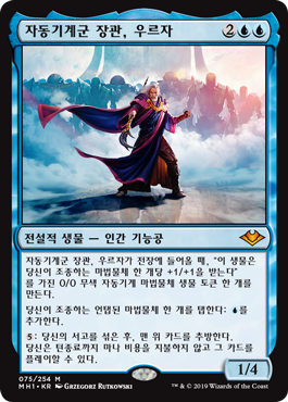 | Rules | When Urza, Lord High Artificer enters the battlefield, create a 0/0 colorless Construct artifact creature token with "This creature gets +1/+1 for each artifact you control." Tap an untapped artifact you control: Add . : Shuffle your library, then exile the top card. Until end of turn, you may play that card without paying its mana cost. |