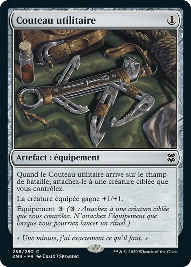 | Rules | When Utility Knife enters the battlefield, attach it to target creature you control. Equipped creature gets +1/+1. Equip (: Attach to target creature you control. Equip only as a sorcery.) |