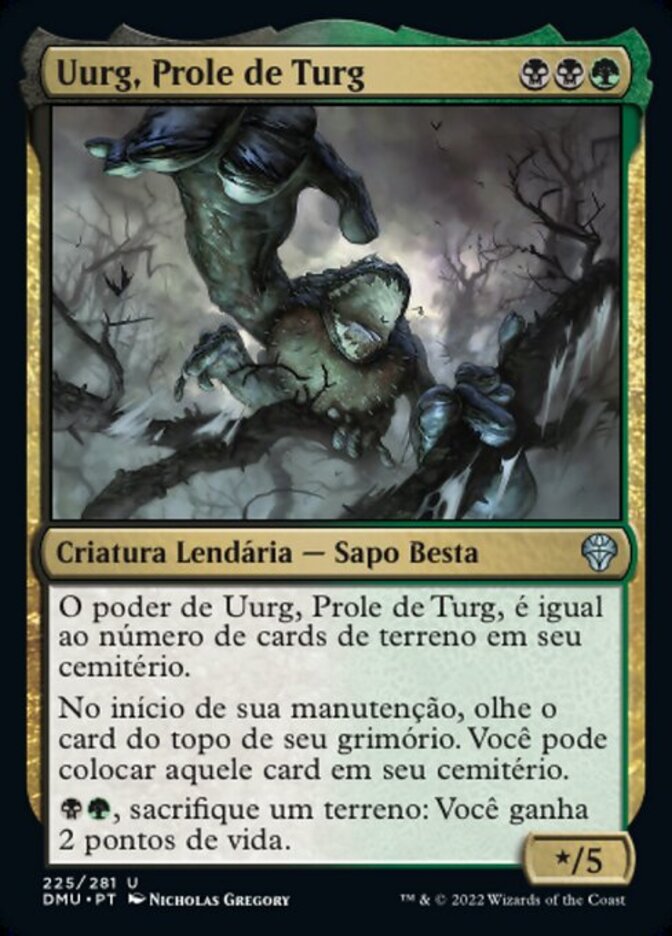 | Rules | Uurg, Spawn of Turg's power is equal to the number of land cards in your graveyard. At the beginning of your upkeep, look at the top card of your library. You may put that card into your graveyard. , Sacrifice a land: You gain 2 life. |