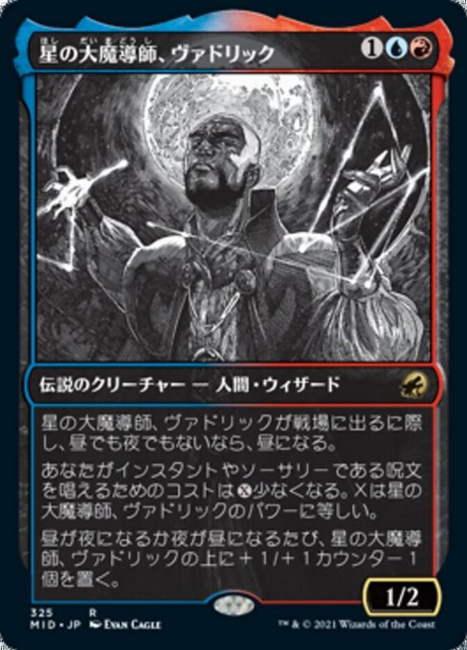 | Rules | If it's neither day nor night, it becomes day as Vadrik, Astral Archmage enters the battlefield. Instant and sorcery spells you cast cost less to cast, where X is Vadrik's power. Whenever day becomes night or night becomes day, put a +1/+1 counter on Vadrik. |
