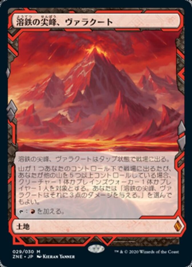 | Rules | Valakut, the Molten Pinnacle enters the battlefield tapped. Whenever a Mountain enters the battlefield under your control, if you control at least five other Mountains, you may have Valakut, the Molten Pinnacle deal 3 damage to any target. : Add . |