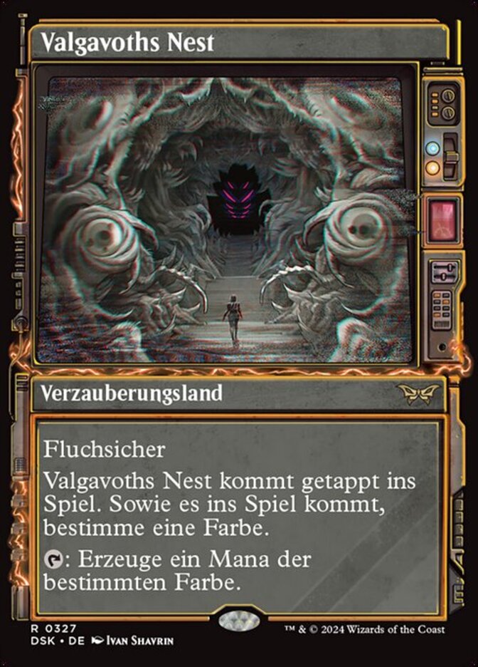 | Rules | Hexproof Valgavoth's Lair enters tapped. As it enters, choose a color. : Add one mana of the chosen color. |