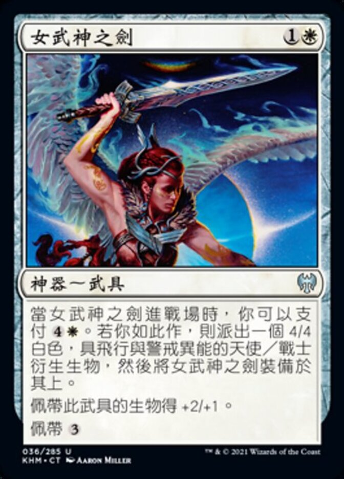 | Rules | When Valkyrie's Sword enters the battlefield, you may pay . If you do, create a 4/4 white Angel Warrior creature token with flying and vigilance, then attach Valkyrie's Sword to it. Equipped creature gets +2/+1. Equip |