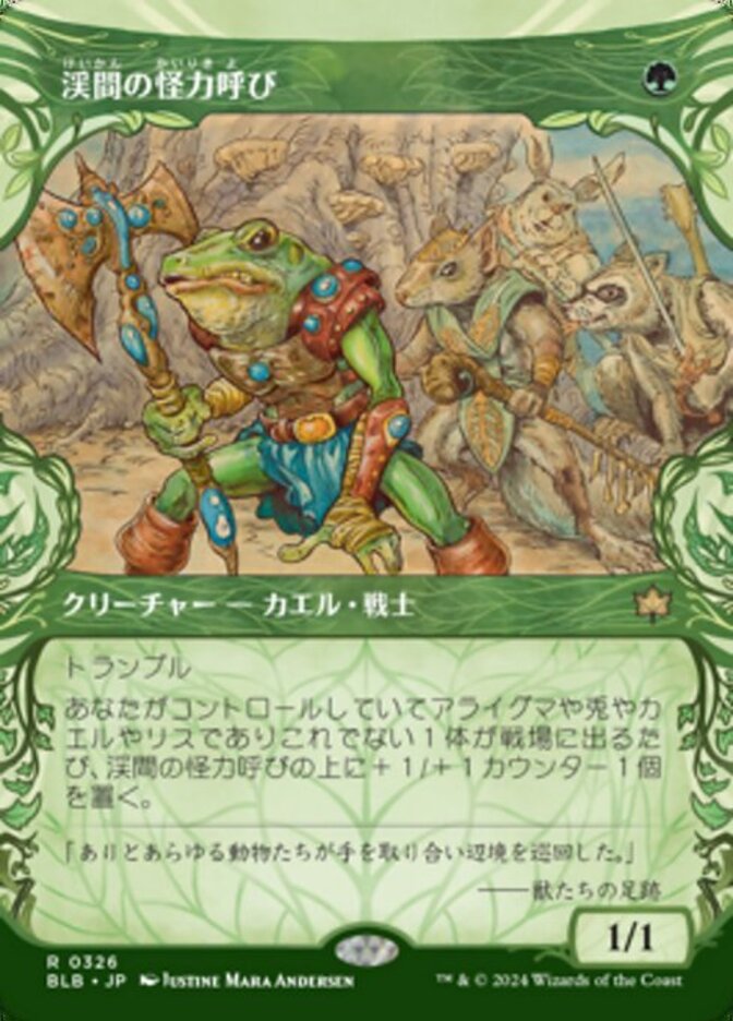 | Rules | Trample Whenever another Frog, Rabbit, Raccoon, or Squirrel you control enters, put a +1/+1 counter on Valley Mightcaller. |