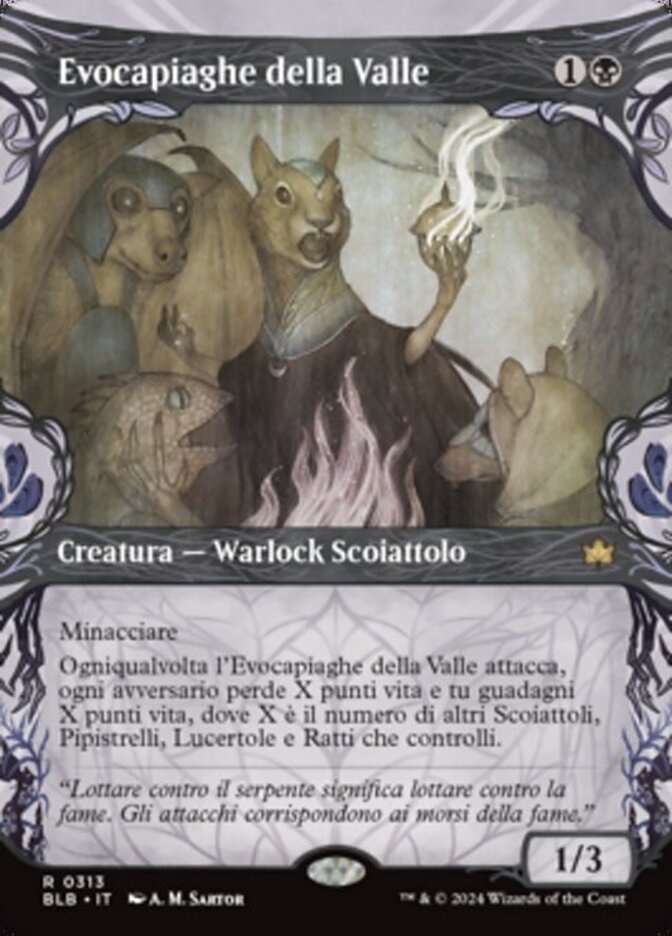 | Rules | Menace Whenever Valley Rotcaller attacks, each opponent loses X life and you gain X life, where X is the number of other Squirrels, Bats, Lizards, and Rats you control. |