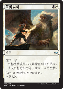 | Rules | Choose one — • Target creature gains indestructible until end of turn. (Damage and effects that say "destroy" don't destroy it.) • Destroy target creature with toughness 4 or greater. |