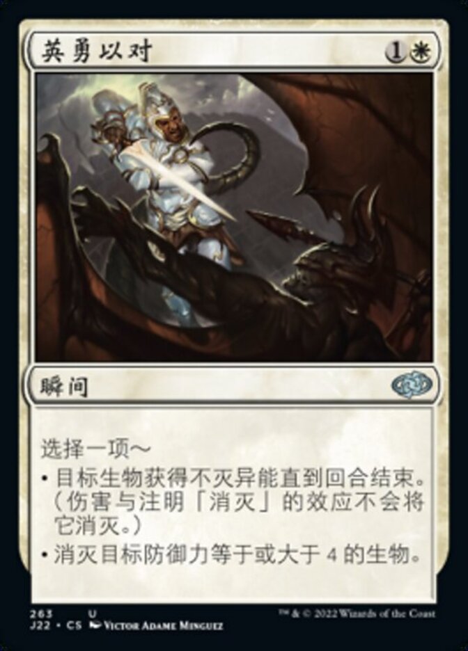 | Rules | Choose one — • Target creature gains indestructible until end of turn. (Damage and effects that say "destroy" don't destroy it.) • Destroy target creature with toughness 4 or greater. |