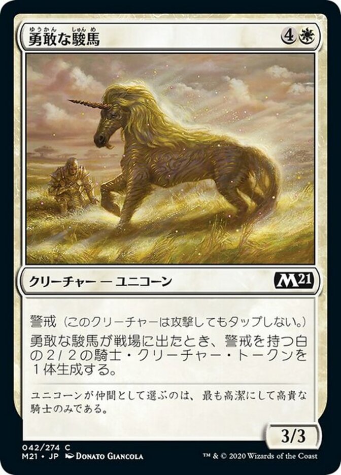| Rules | Vigilance (Attacking doesn't cause this creature to tap.) When Valorous Steed enters the battlefield, create a 2/2 white Knight creature token with vigilance. |