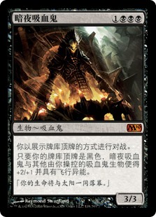 | Rules | Play with the top card of your library revealed. As long as the top card of your library is black, Vampire Nocturnus and other Vampire creatures you control get +2/+1 and have flying. |