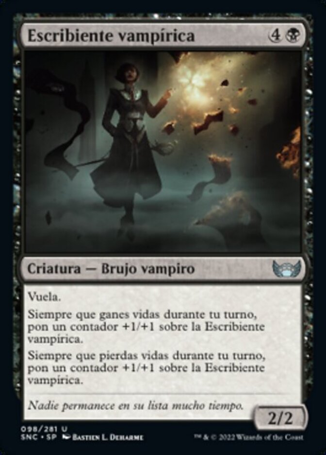 | Rules | Flying Whenever you gain life during your turn, put a +1/+1 counter on Vampire Scrivener. Whenever you lose life during your turn, put a +1/+1 counter on Vampire Scrivener. |