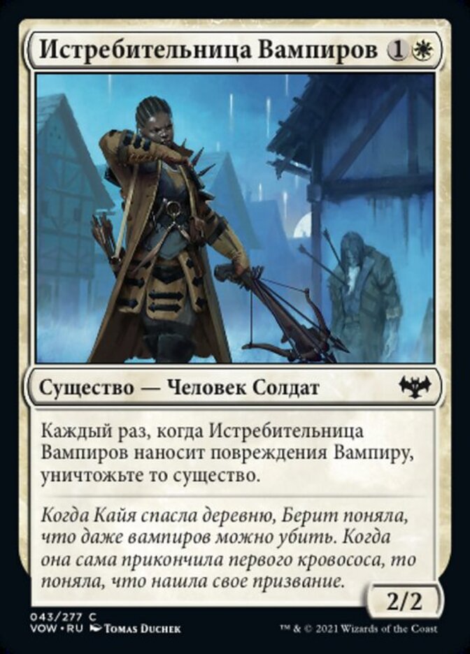 | Rules | Whenever Vampire Slayer deals damage to a Vampire, destroy that creature. |