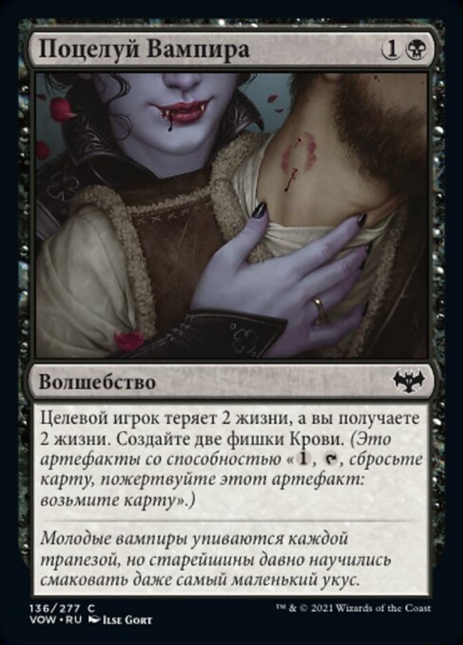 | Rules | Target player loses 2 life and you gain 2 life. Create two Blood tokens. (They're artifacts with ", , Discard a card, Sacrifice this artifact: Draw a card.") |