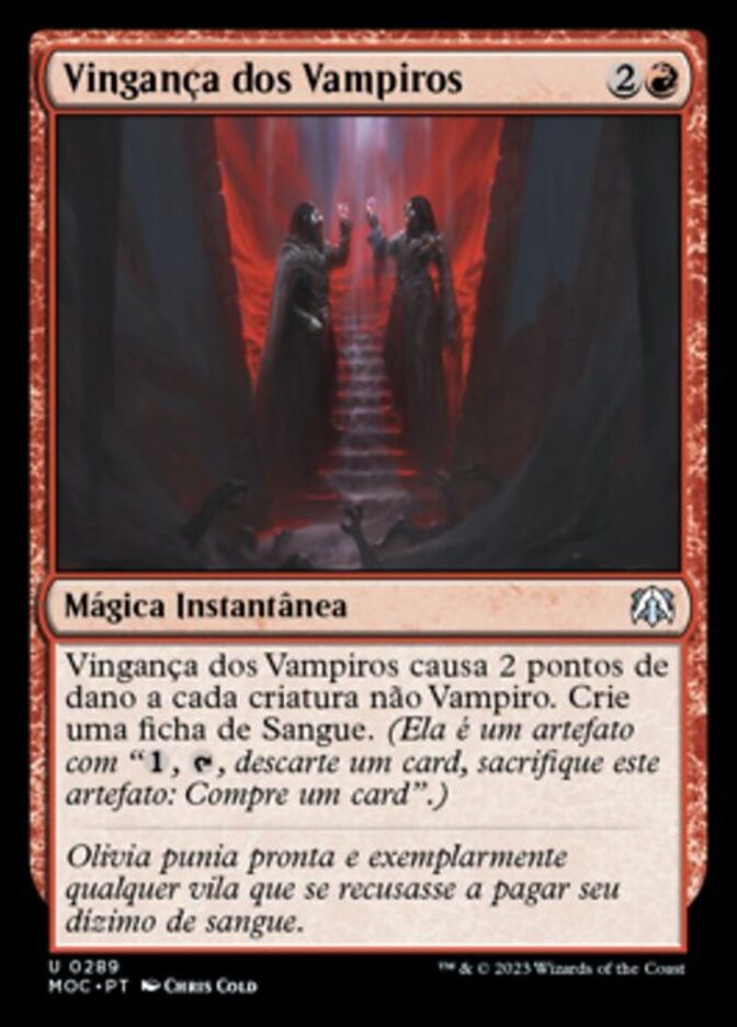 | Rules | Vampires' Vengeance deals 2 damage to each non-Vampire creature. Create a Blood token. (It's an artifact with ", , Discard a card, Sacrifice this artifact: Draw a card.") |