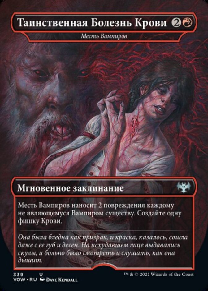 | Rules | Vampires' Vengeance deals 2 damage to each non-Vampire creature. Create a Blood token. (It's an artifact with ", , Discard a card, Sacrifice this artifact: Draw a card.") |