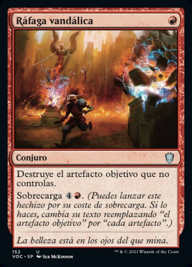 | Rules | Destroy target artifact you don't control. Overload (You may cast this spell for its overload cost. If you do, change its text by replacing all instances of "target" with "each.") |