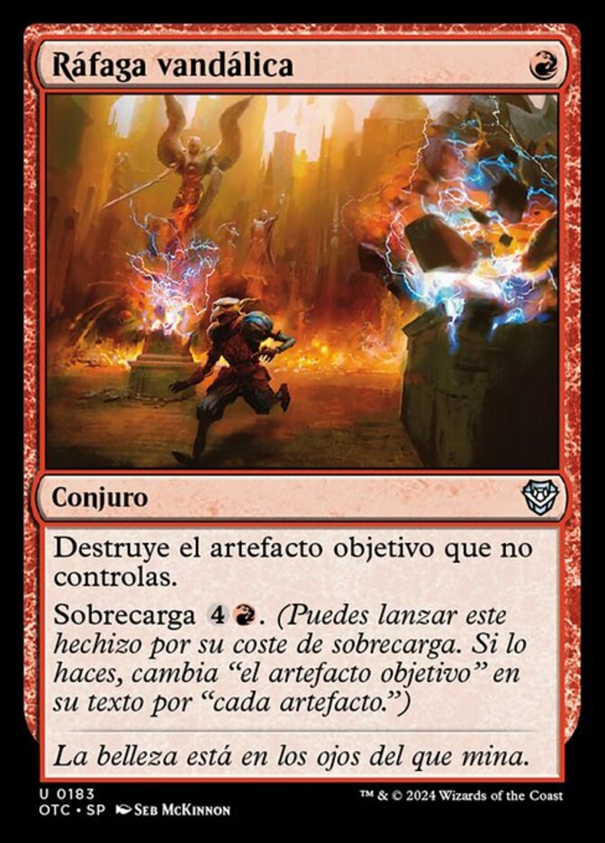 | Rules | Destroy target artifact you don't control. Overload (You may cast this spell for its overload cost. If you do, change its text by replacing all instances of "target" with "each.") |