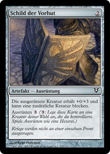 | Rules | Equipped creature gets +0/+3 and can block an additional creature each combat. Equip (: Attach to target creature you control. Equip only as a sorcery.) |