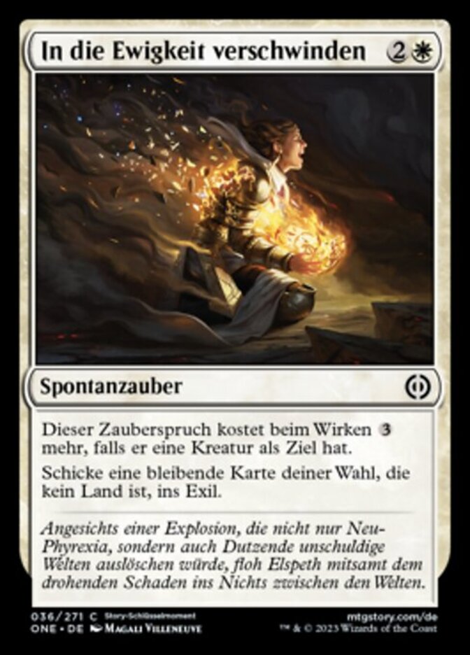 | Flavor | Faced with a blast that would level not only New Phyrexia, but also a dozen innocent worlds, Elspeth consigned it—and herself—to the nothingness in between. |