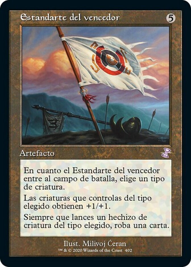 | Rules | As Vanquisher's Banner enters the battlefield, choose a creature type. Creatures you control of the chosen type get +1/+1. Whenever you cast a creature spell of the chosen type, draw a card. |