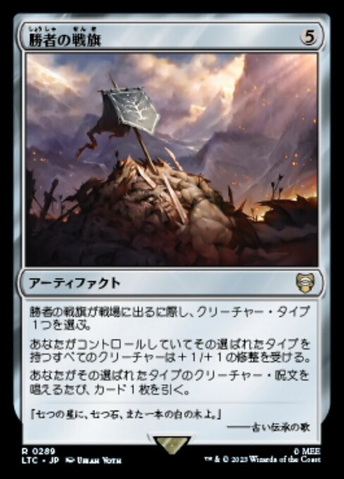 | Rules | As Vanquisher's Banner enters the battlefield, choose a creature type. Creatures you control of the chosen type get +1/+1. Whenever you cast a creature spell of the chosen type, draw a card. |