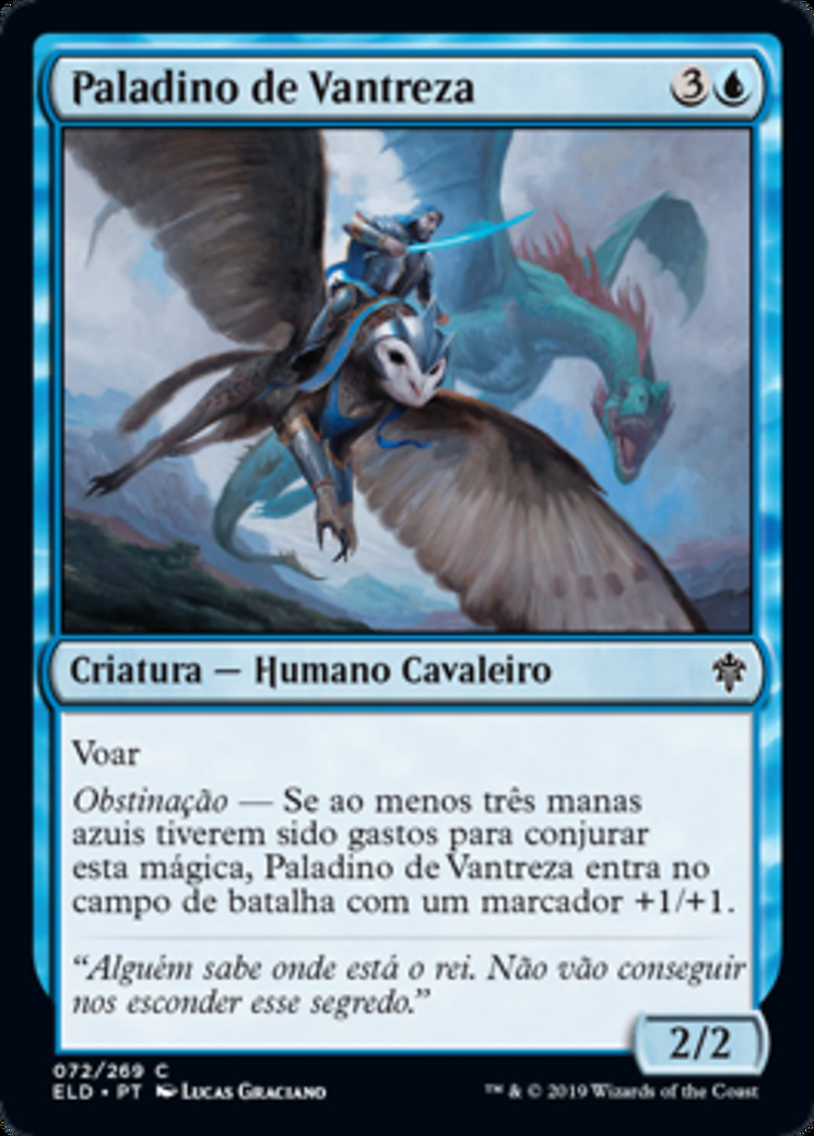 | Rules | Flying Adamant — If at least three blue mana was spent to cast this spell, Vantress Paladin enters the battlefield with a +1/+1 counter on it. |