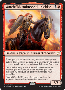 | Rules | Whenever Varchild, Betrayer of Kjeldor deals combat damage to a player, that player creates that many 1/1 red Survivor creature tokens. Survivors your opponents control can't block, and they can't attack you or planeswalkers you control. When Varchild leaves the battlefield, gain control of all Survivors. |