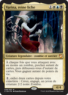 | Rules | Whenever you attack with one or more Zombies, draw that many cards, then discard that many cards. You gain that much life. , Exile two cards from your graveyard: Create a tapped 2/2 black Zombie creature token. |