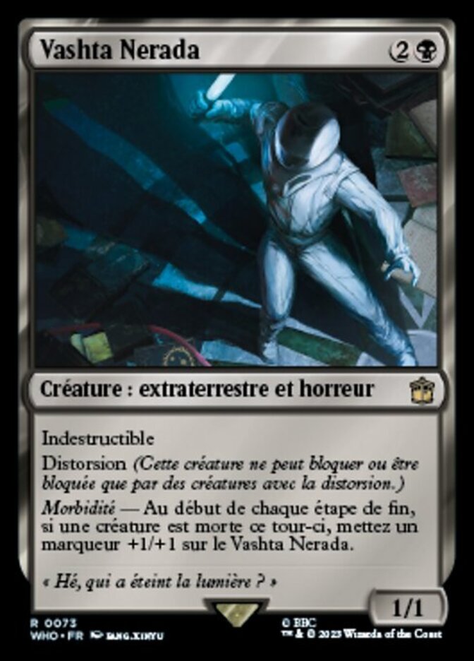 | Rules | Indestructible Shadow (This creature can block or be blocked by only creatures with shadow.) Morbid — At the beginning of each end step, if a creature died this turn, put a +1/+1 counter on Vashta Nerada. |
