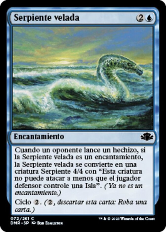 | Rules | When an opponent casts a spell, if Veiled Serpent is an enchantment, Veiled Serpent becomes a 4/4 Serpent creature with "This creature can't attack unless defending player controls an Island." Cycling (, Discard this card: Draw a card.) |