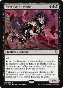 | Rules | Flying , : Vein Drinker deals damage equal to its power to target creature. That creature deals damage equal to its power to Vein Drinker. Whenever a creature dealt damage by Vein Drinker this turn dies, put a +1/+1 counter on Vein Drinker. |