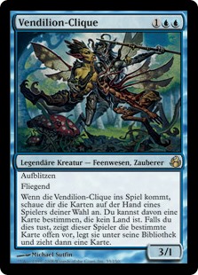 | Rules | Flash Flying When Vendilion Clique enters the battlefield, look at target player's hand. You may choose a nonland card from it. If you do, that player reveals the chosen card, puts it on the bottom of their library, then draws a card. |