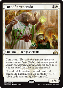| Rules | Convoke (Your creatures can help cast this spell. Each creature you tap while casting this spell pays for or one mana of that creature's color.) When Venerated Loxodon enters the battlefield, put a +1/+1 counter on each creature that convoked it. |