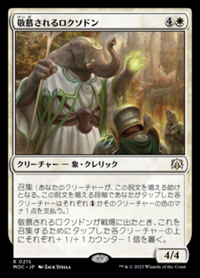| Rules | Convoke (Your creatures can help cast this spell. Each creature you tap while casting this spell pays for or one mana of that creature's color.) When Venerated Loxodon enters the battlefield, put a +1/+1 counter on each creature that convoked it. |