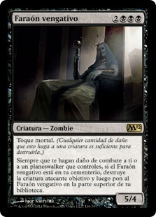 | Rules | Deathtouch (Any amount of damage this deals to a creature is enough to destroy it.) Whenever combat damage is dealt to you or a planeswalker you control, if Vengeful Pharaoh is in your graveyard, destroy target attacking creature, then put Vengeful Pharaoh on top of your library. |
