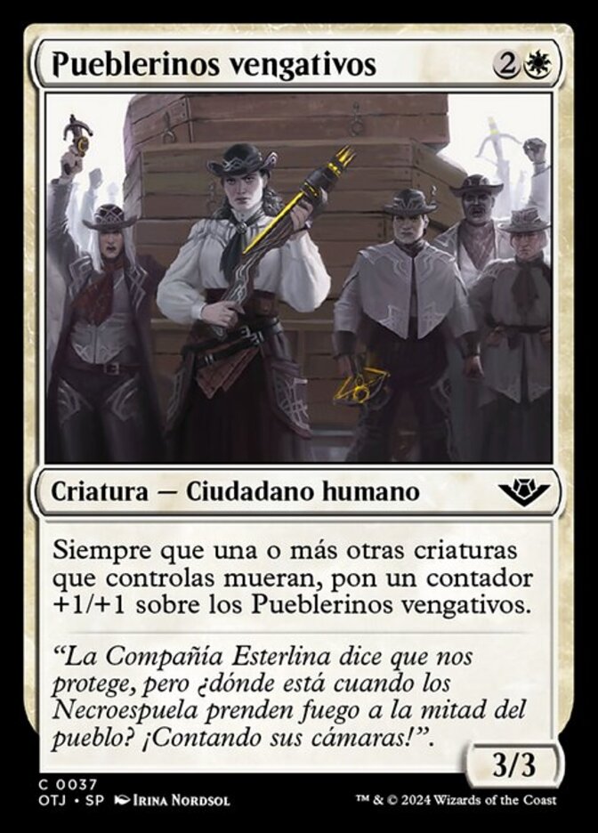 | Rules | Whenever one or more other creatures you control die, put a +1/+1 counter on Vengeful Townsfolk. |