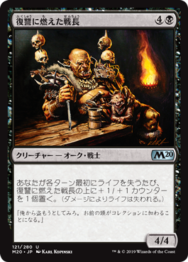 | Rules | Whenever you lose life for the first time each turn, put a +1/+1 counter on Vengeful Warchief. (Damage causes loss of life.) |