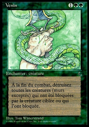 | Rules | Enchant creature Whenever enchanted creature blocks or becomes blocked by a non-Wall creature, destroy the other creature at end of combat. |